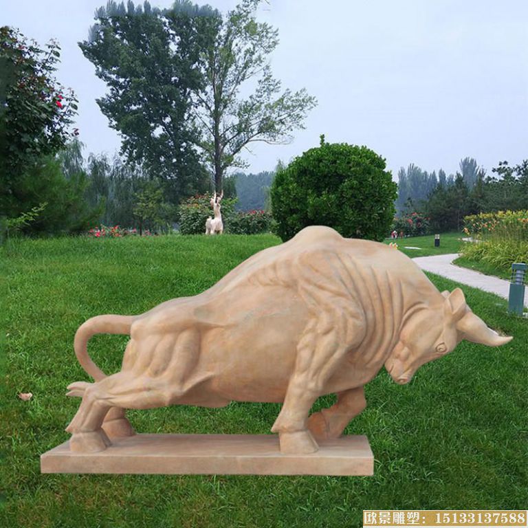 厂家生产定制晚霞红华尔街牛石雕 精致做工石牛 高品质石头雕刻动物雕塑