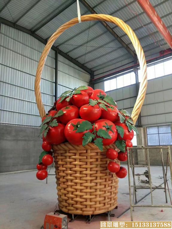 玻璃钢番茄篮子雕塑 西红柿篮雕塑